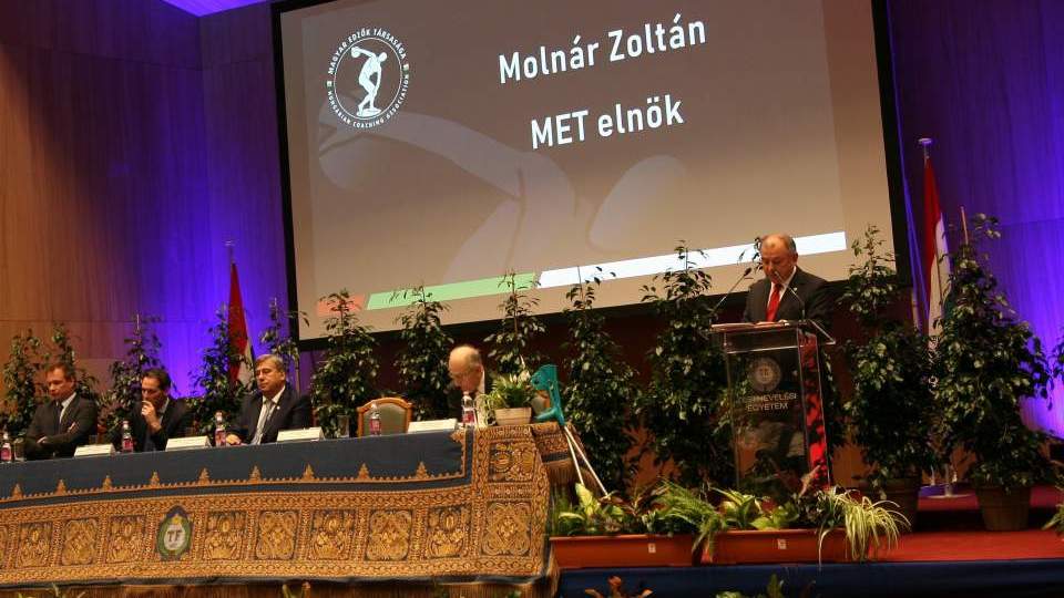 Molnár Zoltán MET-elnök köszönetet mondott a korábbi elnököknek és az alapítótagoknak. Rövid statisztikai visszatekintést ismertetett, majd elmondta, a Kiemelt Edző Programra a kormány több mint 220 edzőre mintegy két milliárd forintot biztosít. A MOB korábbi főtitkári posztját is betöltő sportvezető beszélt arról is, hogy 2001-től gondozza a szervezet a mesteredzői elismeréseket dr. Kemény Dénes vezetésével. Méltatta a TF újraindított szakedzőképzését, az egyetem „csodálatos átalakulását” és beszélt tervükről, a Nemzet Edzője-cím megalapításáról. Elmondta, hogy az alapító tagoak örökös tiszteletbeli tag címet kapnak. A MOB-MET együttműködéssel kapcsolatban azt hangsúlyozta, kiváló emberi és szakmai kapcsolat van a két szervezet között, a MET képviseletet kapott a MOB közgyűlésében és a sportszakmai bizottság munkáját is segíti.