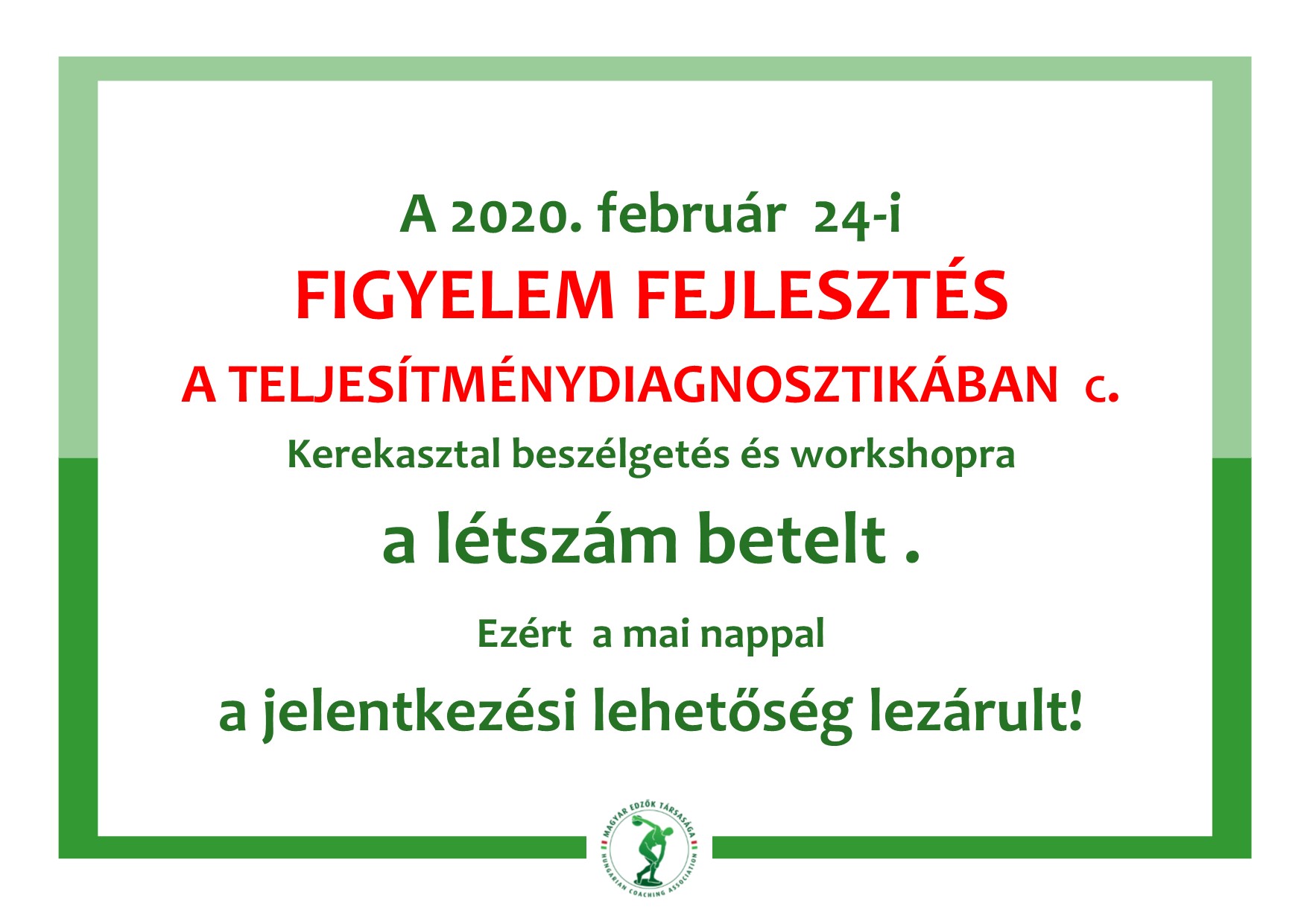 A Figyelemfejlesztés a teljesítménydiagnosztikában workshopra a jelentkezés lezárult