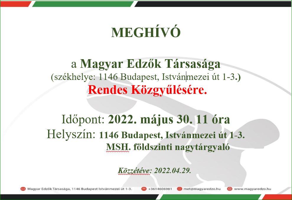 Ma, május 30-án tartotta 2022. évi rendes közgyűlését a Magyar [...]