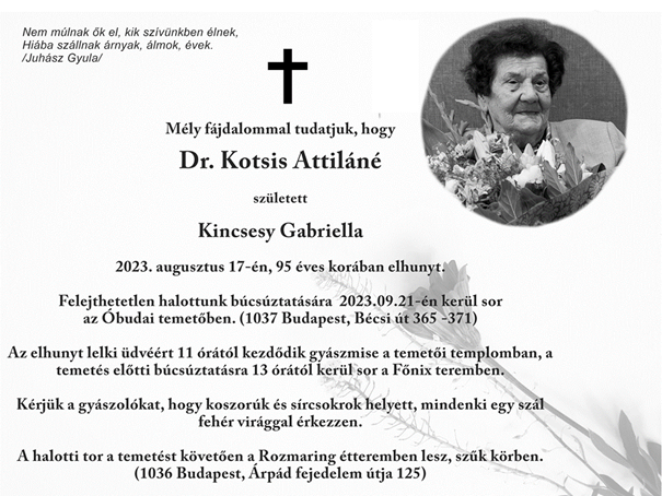 Dr. Kotsis Attiláné mesteredző gyászjelentése