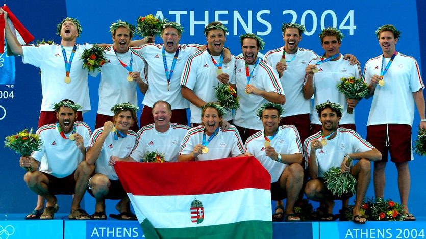 Az athéni olimpián győztes magyar válogatott tagjai. MTI Fotó: Illyés Tibor