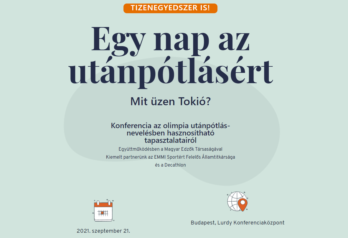 Konferencia az olimpia utánpótlás-nevelésben hasznosítható tapasztalatairól az Utanpotlassport.hu szervezésében, a Magyar Edzők Társasága szakmai együttműködésével, az EMMI és a Decathlon támogatásával, immár tizenegyedszer.