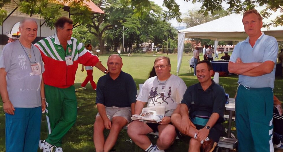 Mesterlegendák 1998-ból. Kovács Tamás, Horváth Kornél, Szlovenszky Lajos, Szlovenszky István és Decsi István. (Fotó: vívómúzeum)