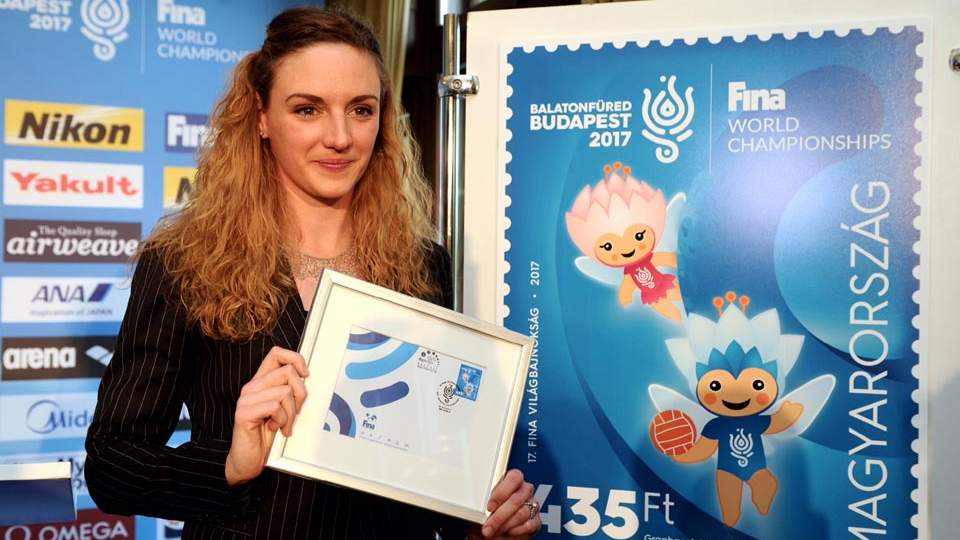 Száz nappal a Budapesten és Balatonfüreden sorra kerülő vizes világbajnokság előtt alkalmi bélyeget bocsátott ki a Magyar Posta. Az eseményen megjelent a háromszoros olimpiai bajnok Hosszú Katinka is.