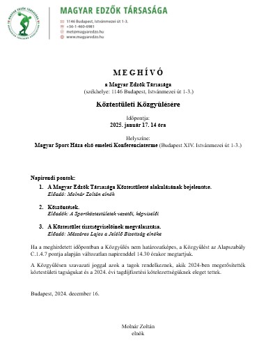 Köztestületi Közgyűlési meghívó Dikácz Ernő által|2024-12-18T11:40:33+01:00december 16th, 2024|Archívum, Hírek|0 hozzászólás