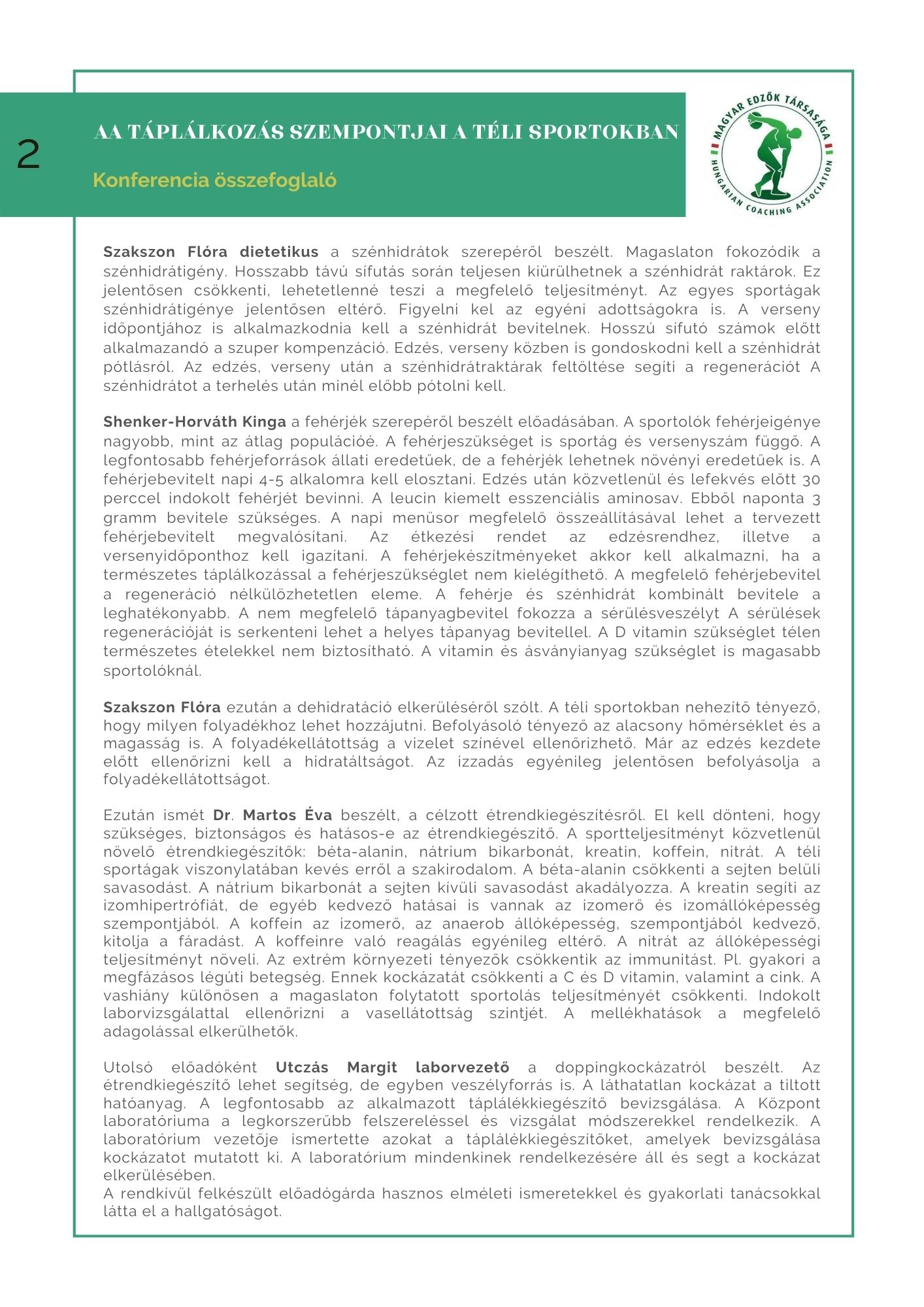 A táplálkozás szempontjai a téli sportokban online konferencia 2022. február 1.Dikácz Ernő2022-12-08T13:01:17+01:00 Project Description A konferencia összefoglalójaA konferencia prezentációiA konferencia videóanyagaiA videók kizárólag MET tagok számára érhetőek el! Ha Ön is MET tag szeretne lenni, kattintson ide! ÖsszefoglalóPrezentációkVideók