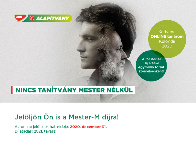 A MOL MESTER-M Díj azoknak az áldozatkész tanároknak, edzőknek a munkáját ismeri el, akik ösztönzik a tehetséges gyerekeket a sport, a művészet és a tudomány területén és szakmailag, emberileg tanítványaik példaképei. Jelöld edződet a MOL Mester-M díjra! Várjuk azon tanárok, edzők, nevelők jelölését, akik 10-18 év közötti fiatalokat oktatnak, nevelnek, segítenek, képeznek, kísérnek, nem csak sportági vagy szaktanári, hanem magas emberi minőséget képviselve.