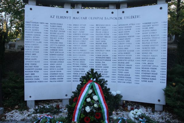 Hagyományos halottak napi megemlékezését ezúttal is megrendezte a Magyar Olimpiai Bizottság a Farkasréti temetőben lévő emléktáblánál, ahol 149 elhunyt olimpiai bajnok neve van a falba vésve. Ez alkalommal nem csak az eltávozott bajnokokra emlékeztek, hanem mindazokra, akik bármilyen szállal kötődtek a magyar olimpiai mozgalomhoz.