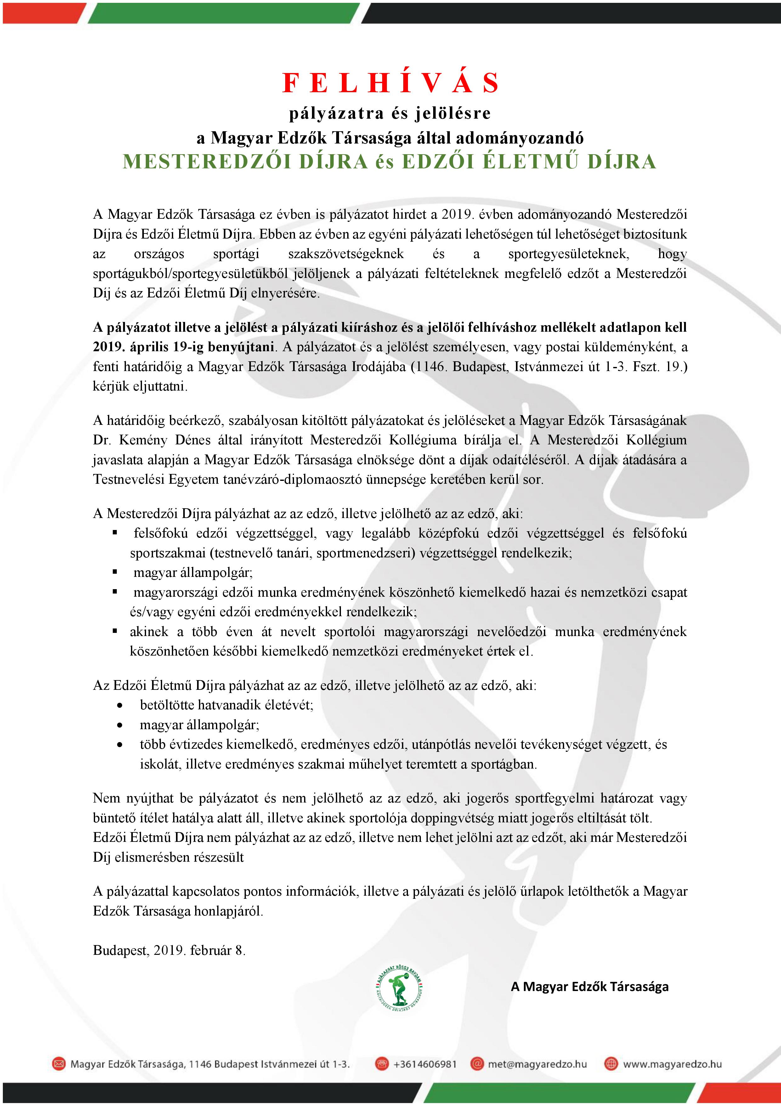 Pályázat Mesteredző és Edzői Életmű Díjra Dikácz Ernő által|2019-04-23T13:41:44+02:00április 1st, 2019|Archívum, Hírek|0 hozzászólás