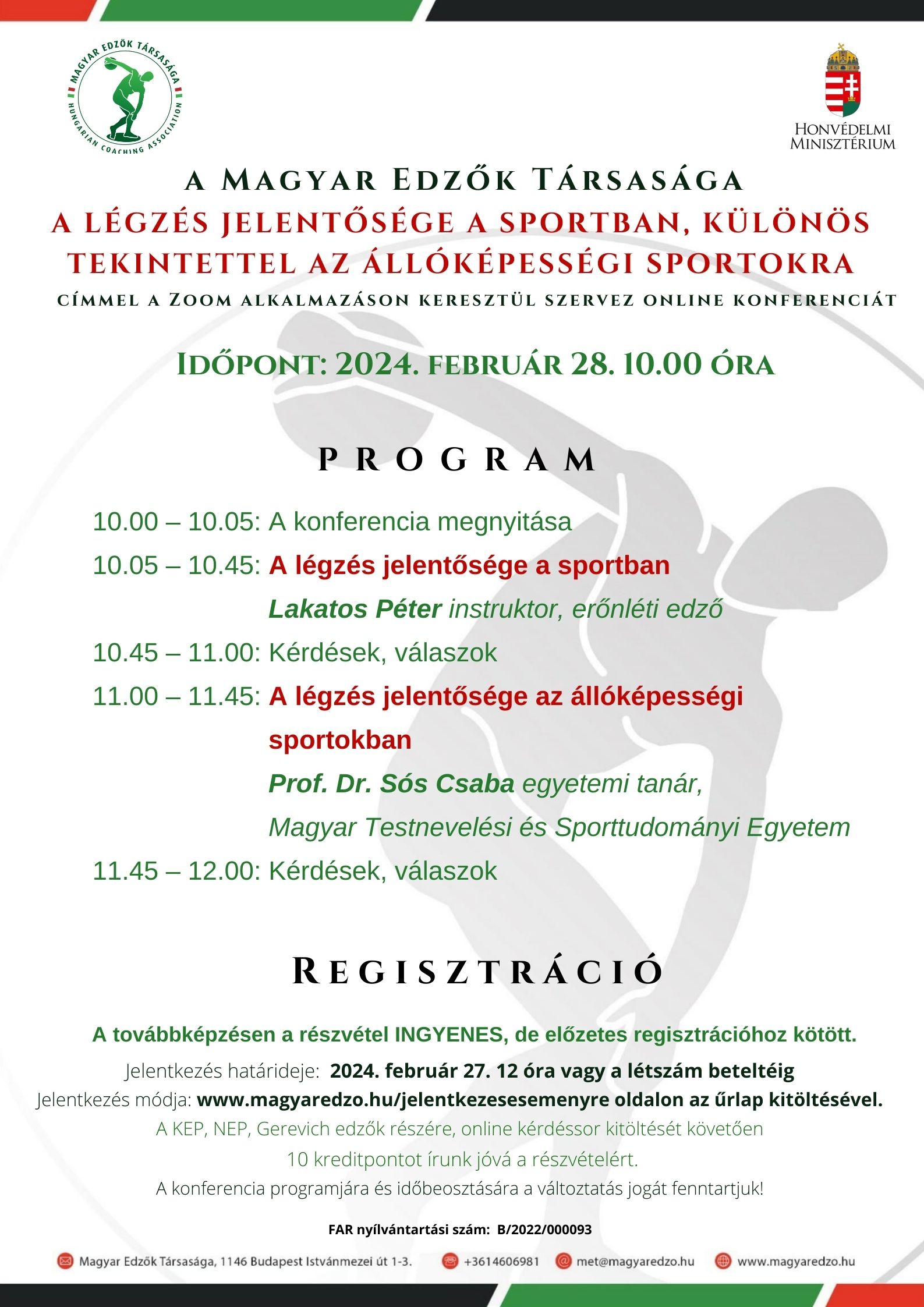 A légzés jelentősége a sportban, különös tekintettel az állóképességi sportokra 2024. február 28.