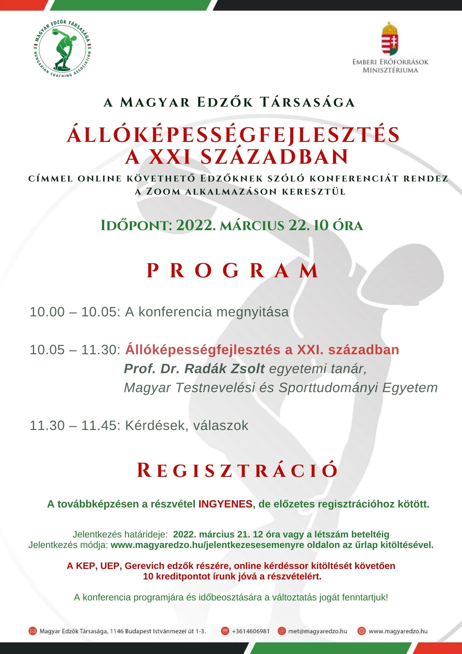 Állóképességfejlesztés a XXI században online konferencia 2022. március 22.