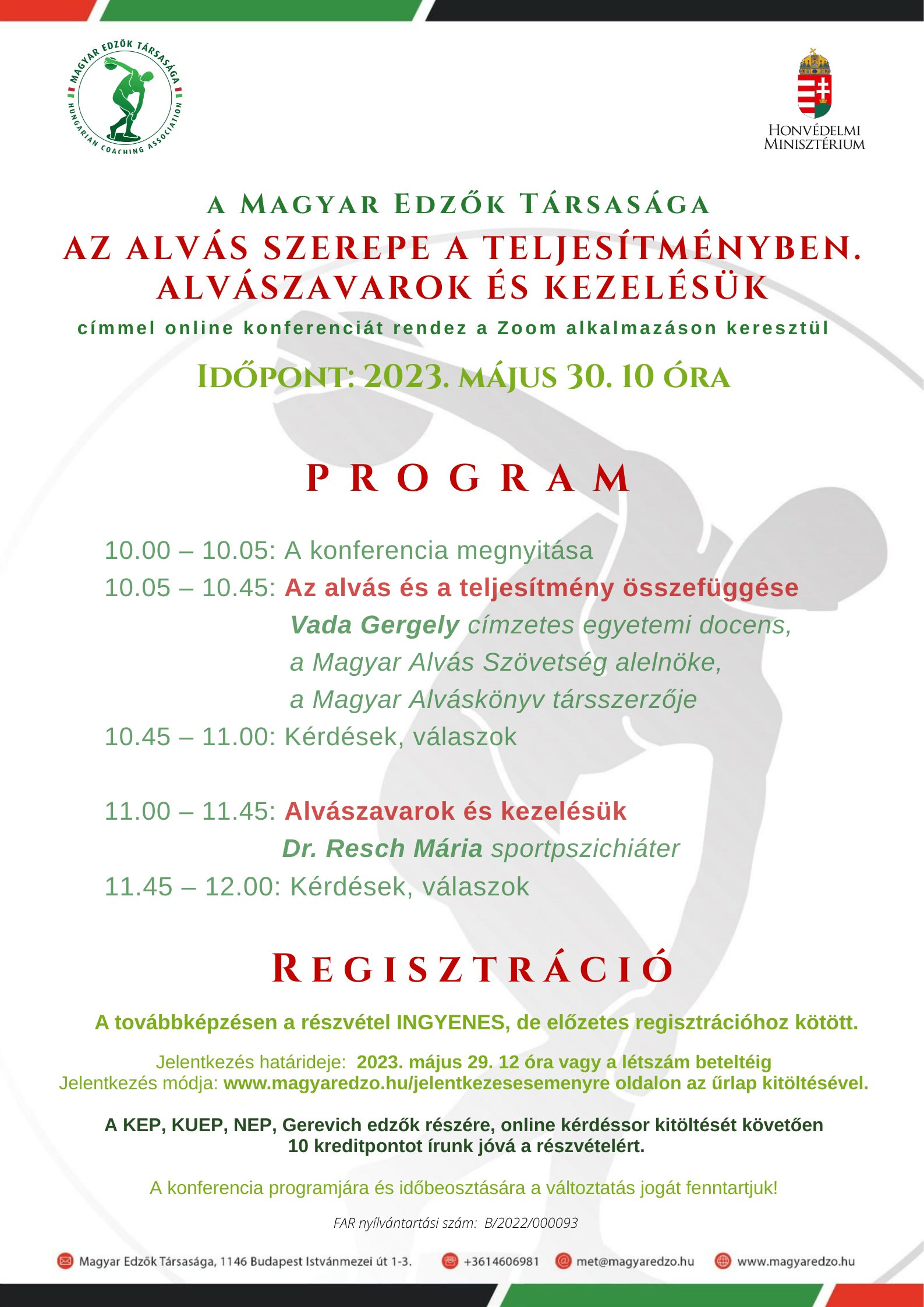 Az alvás szerepe a teljesítményben. Alvászavarok és kezelésük online konferencia 2023. május 30.