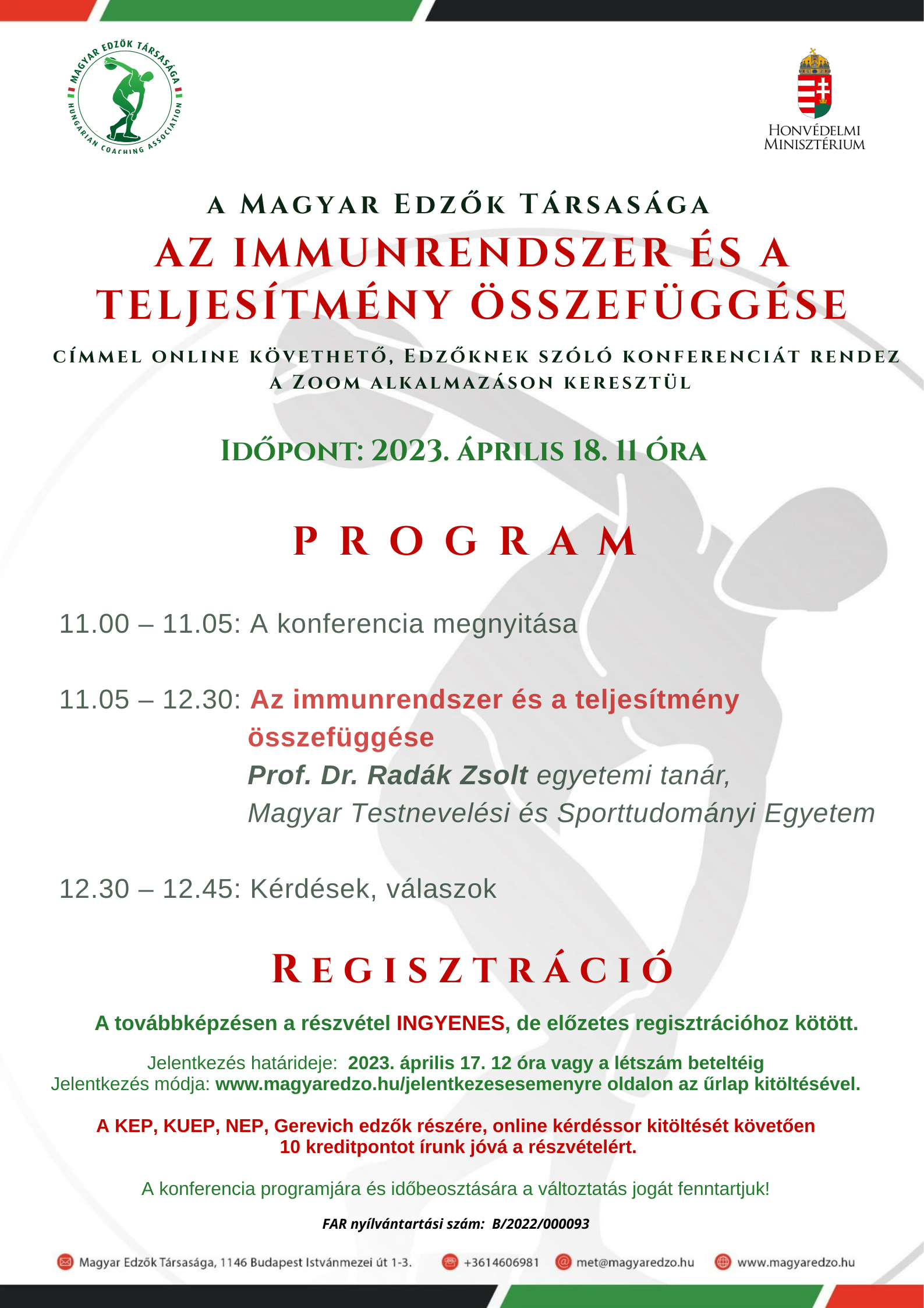 Az immunrendszer és a teljesítmény összefüggése online konferencia 2023. április 18.