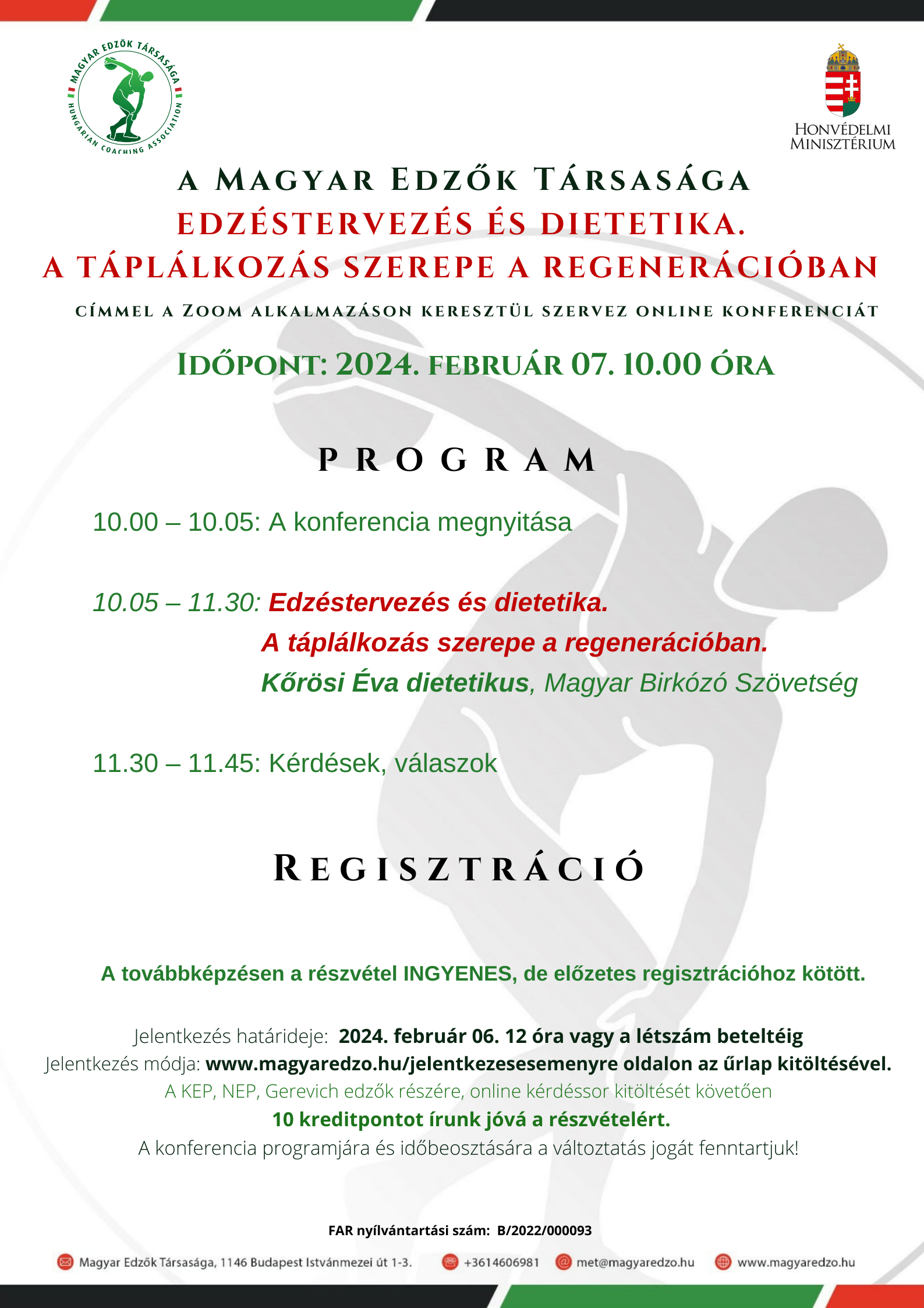 Edzéstervezés és dietetika. A táplálkozás szerepe a regenerációban 2024.február 07.
