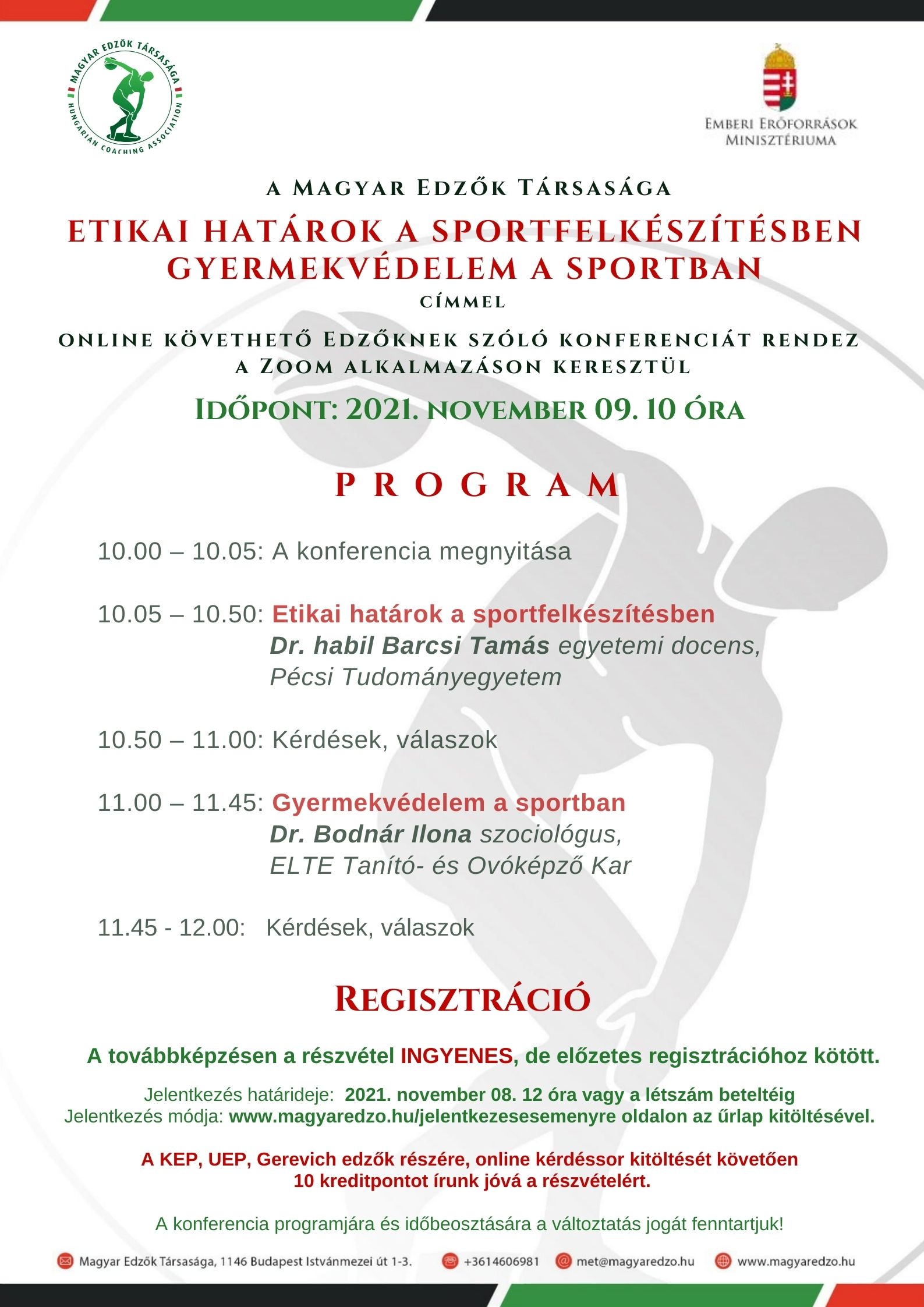 Etikai határok a sportfelkészítésben. Gyermekvédelem a sportban online konferencia 2021. november 9.