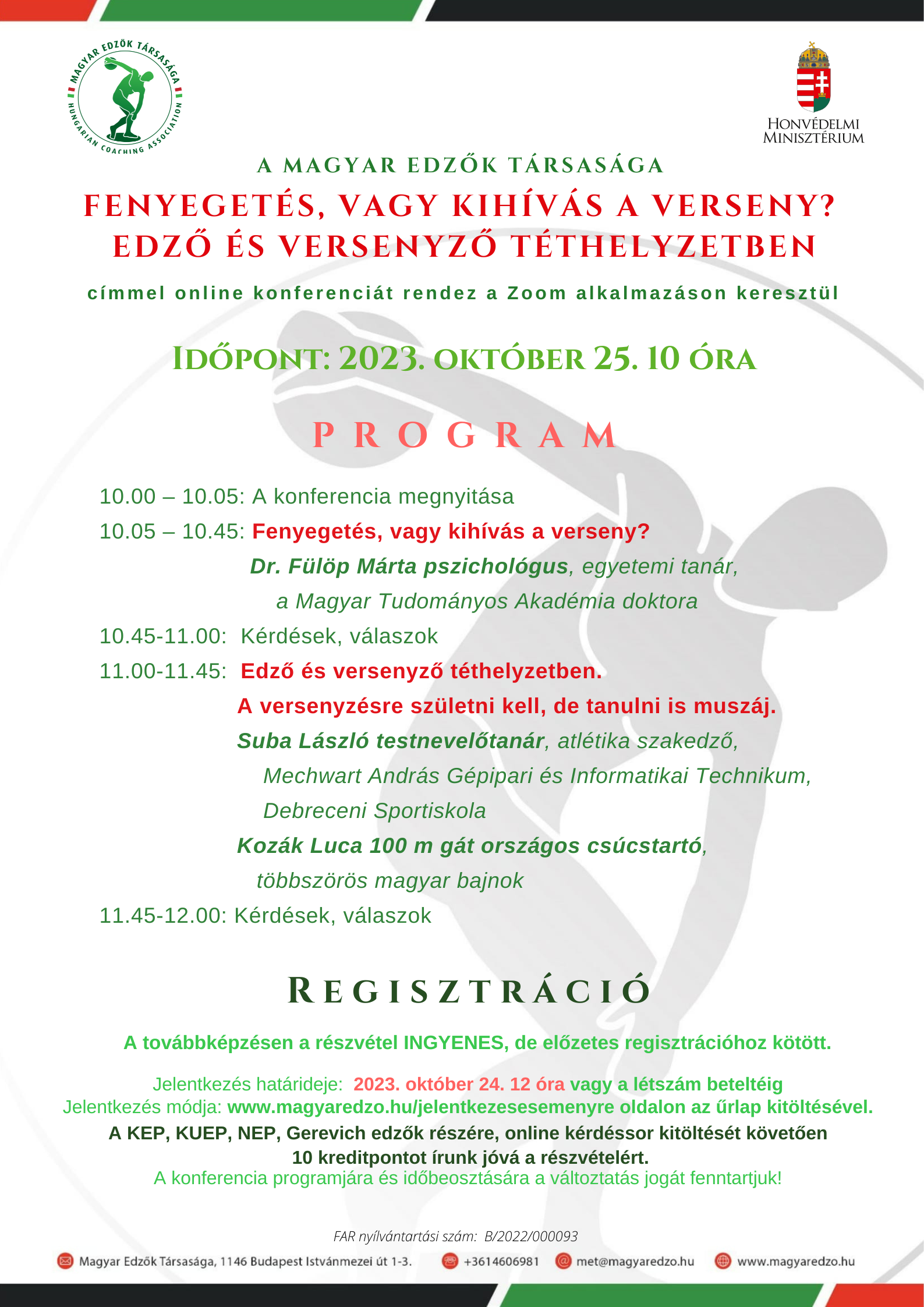 Fenyegetés, vagy kihívás a verseny? Edző és versenyző téthelyzetben online konferencia 2023. október 25.