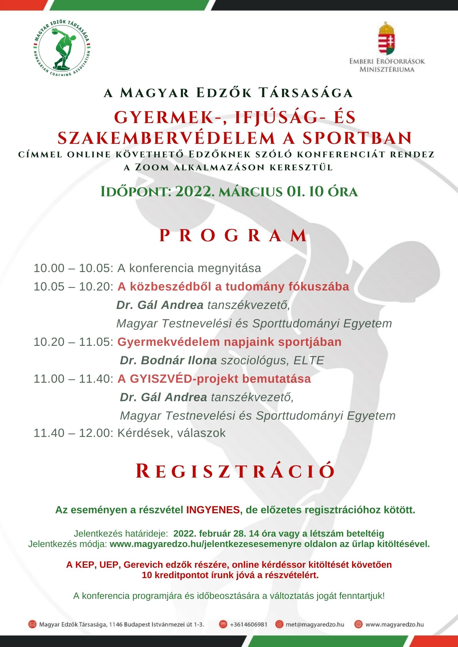 Gyermek-, ifjúság- és szakembervédelem a sportban online konferencia 2022. március 1.