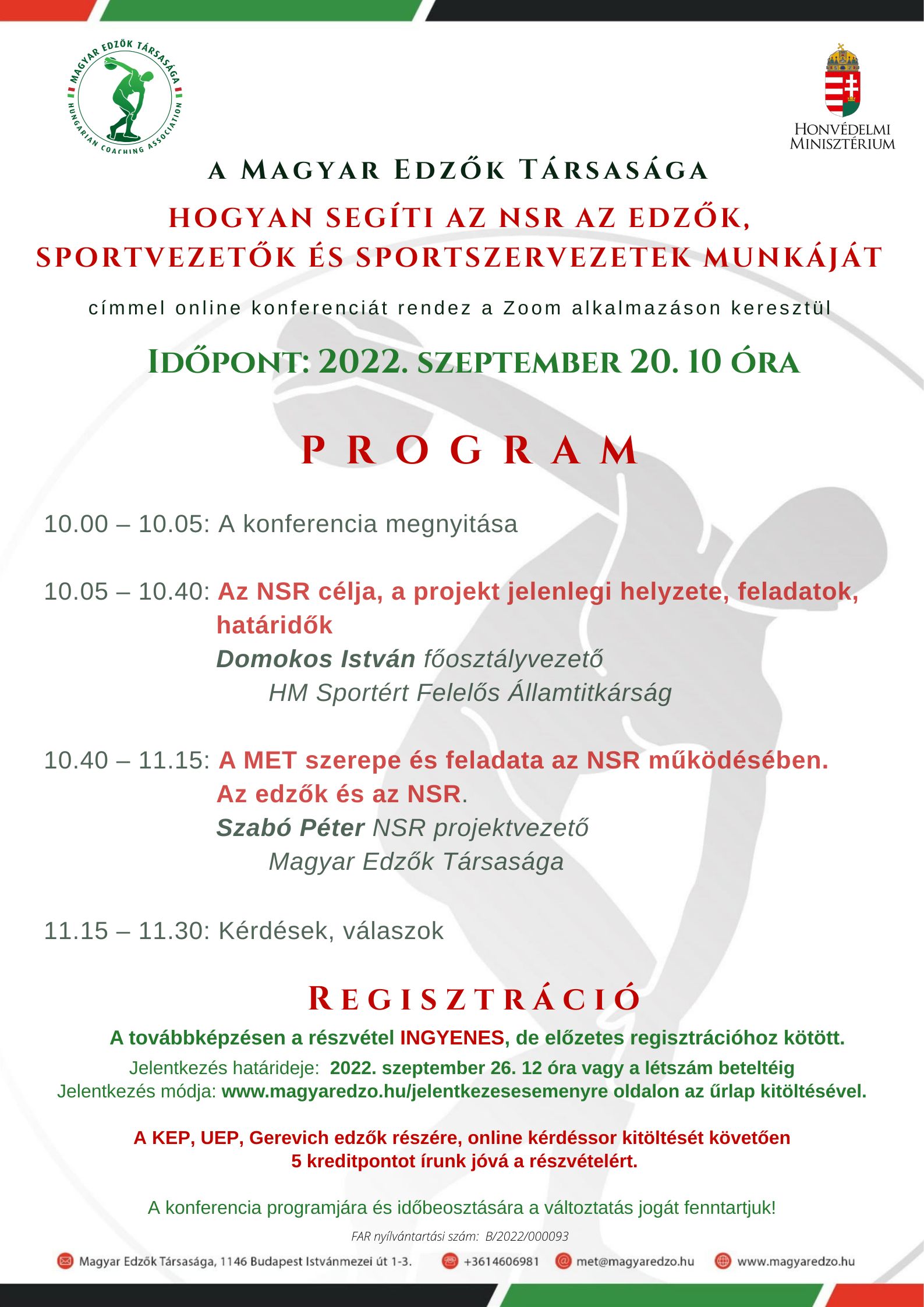 Hogyan segíti az NSR az edzők, sportvezetők és sportszervezetek munkáját online konferencia 2022. szeptember 20.