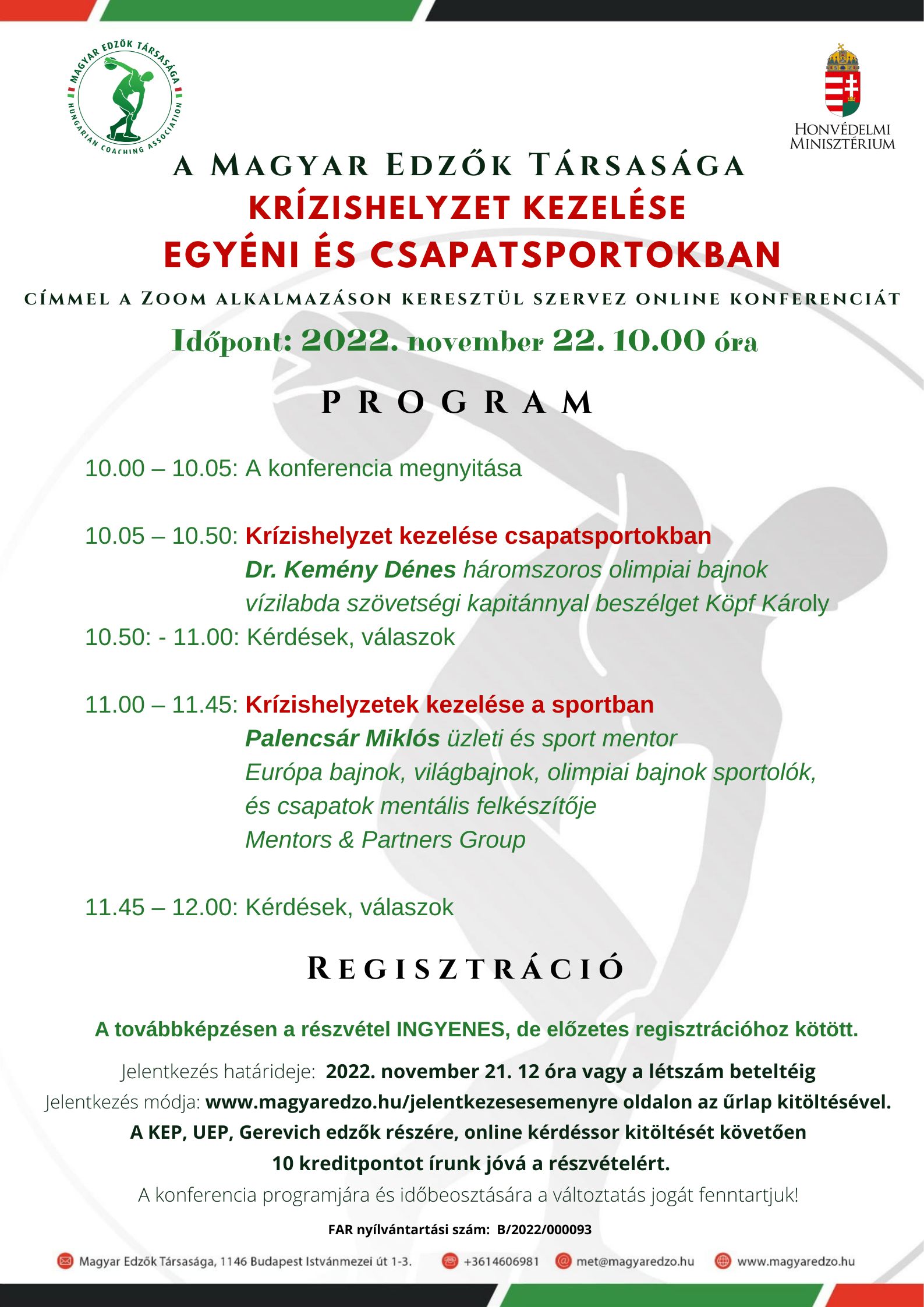 Krízishelyzet kezelése egyéni és csapatsportoknál online konferencia 2022. november 22.