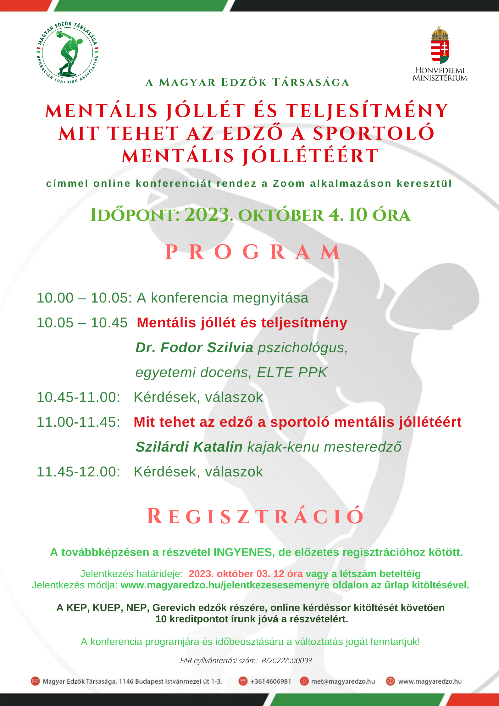 Mentális jóllét és teljesítmény. Mit tehet az edző a sportoló mentális jóllétéért online konferencia 2023. október 04.