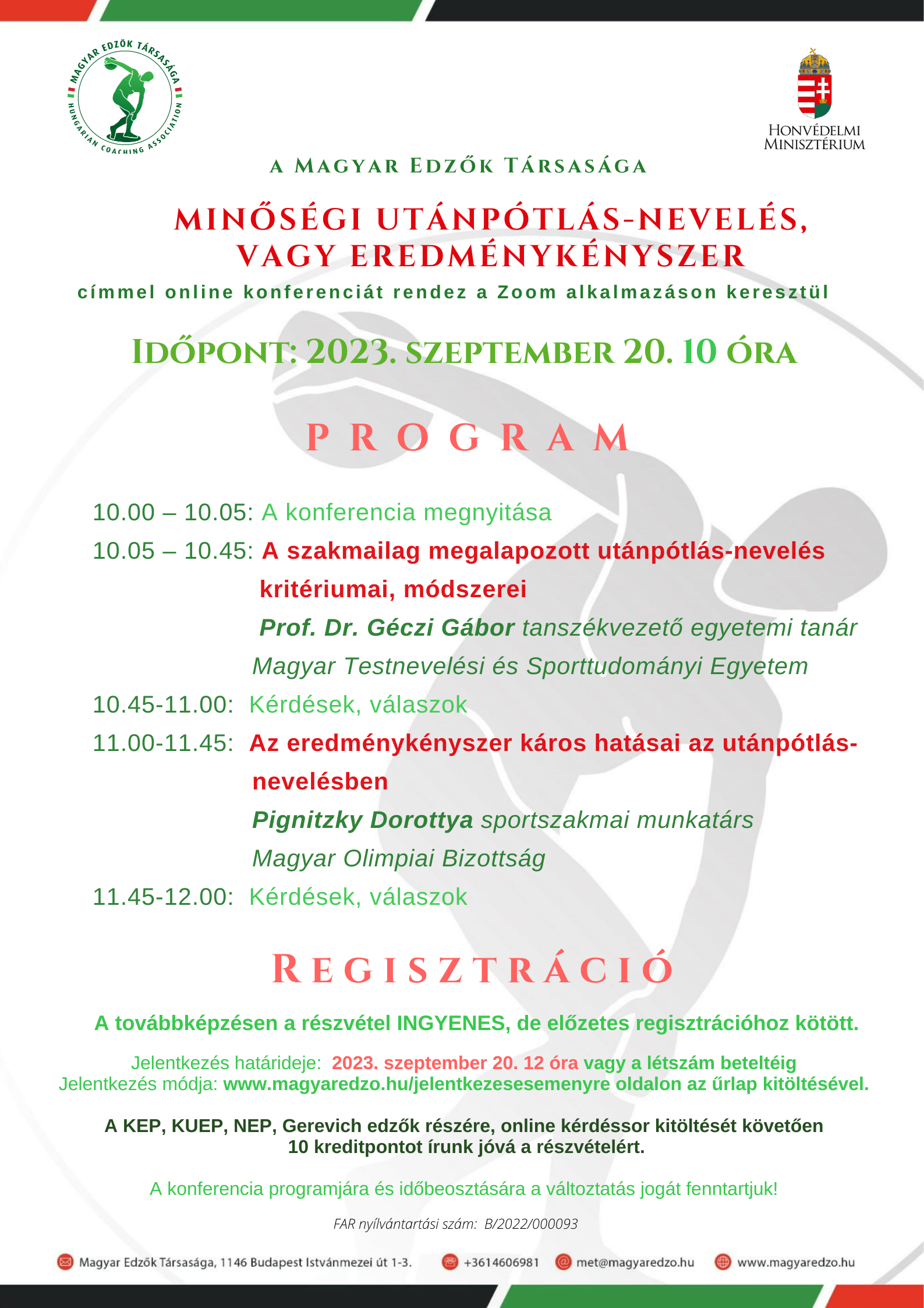 Minőségi utánpótlás-nevelés, vagy eredménykényszer online konferencia 2023. szeptember 20.