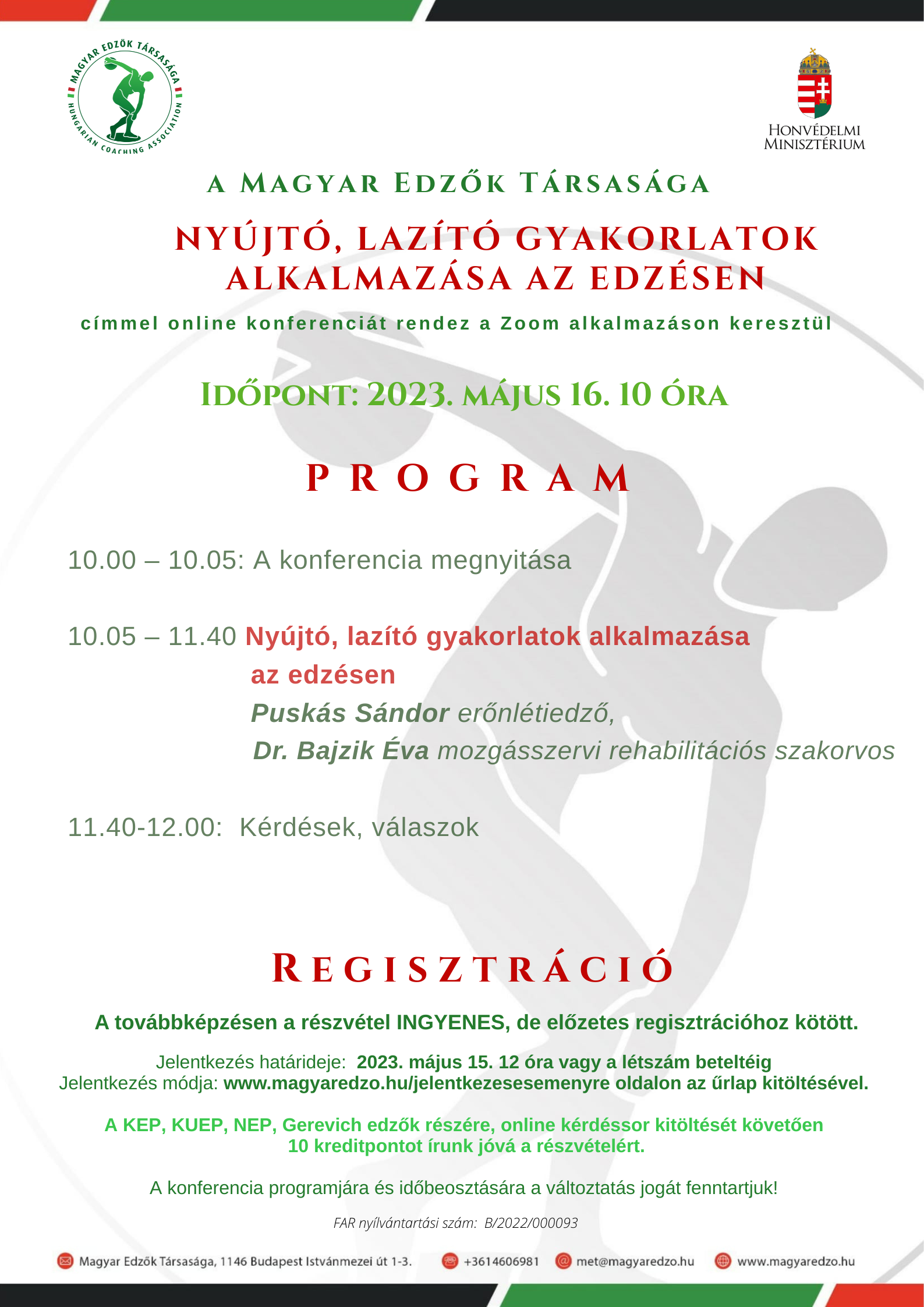 Nyújtó, lazító gyakorlatok alkalmazása az edzésen online konferencia 2023. május 16.