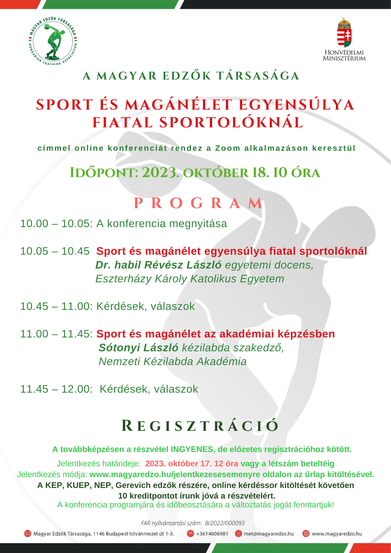 Sport és magánélet egyensúlya fiatal sportolóknál online konferencia 2023. október 18.