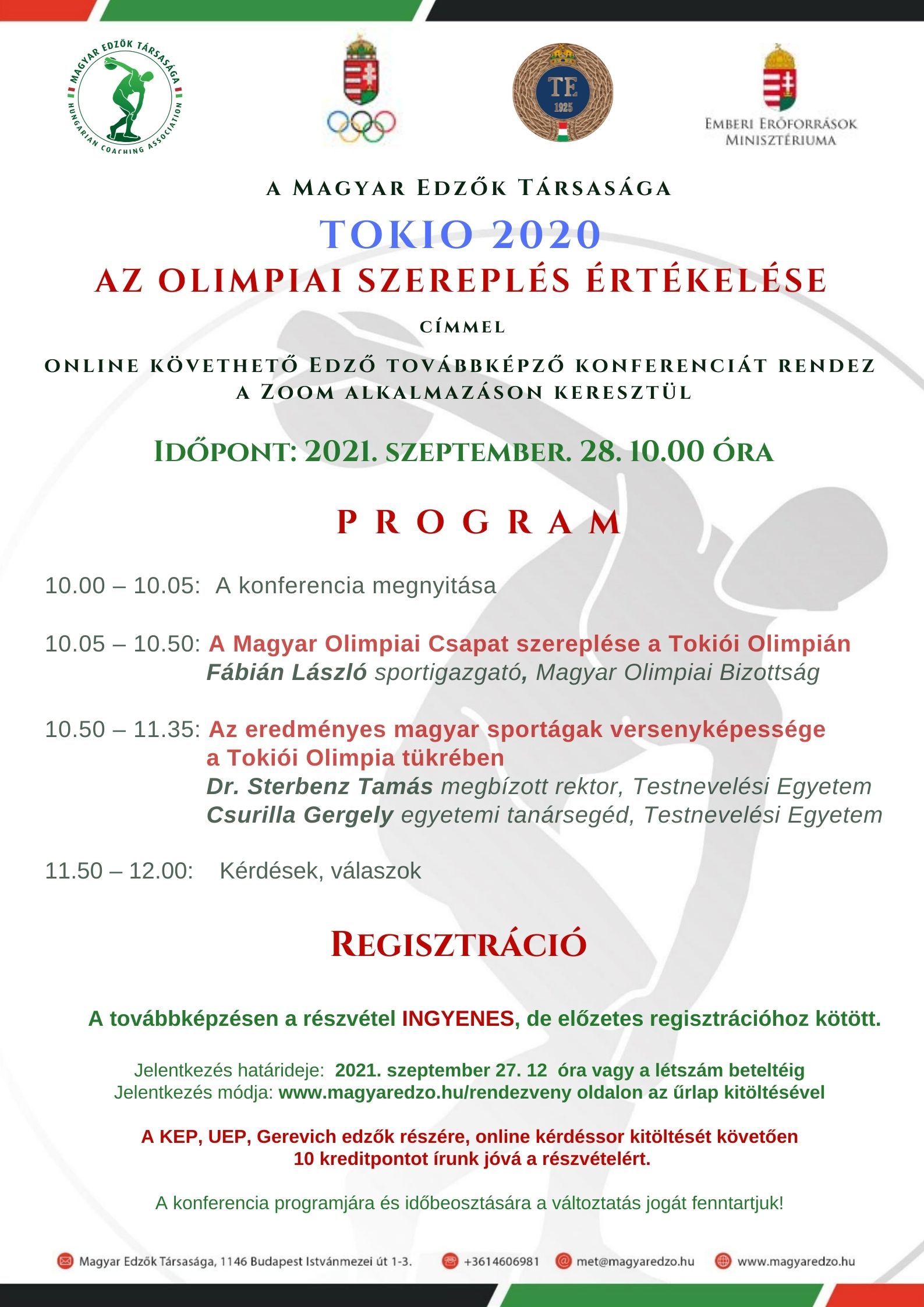 Tokio 2020 Az olimpiai szereplés értékelése online konferencia 2021. szeptember 28.