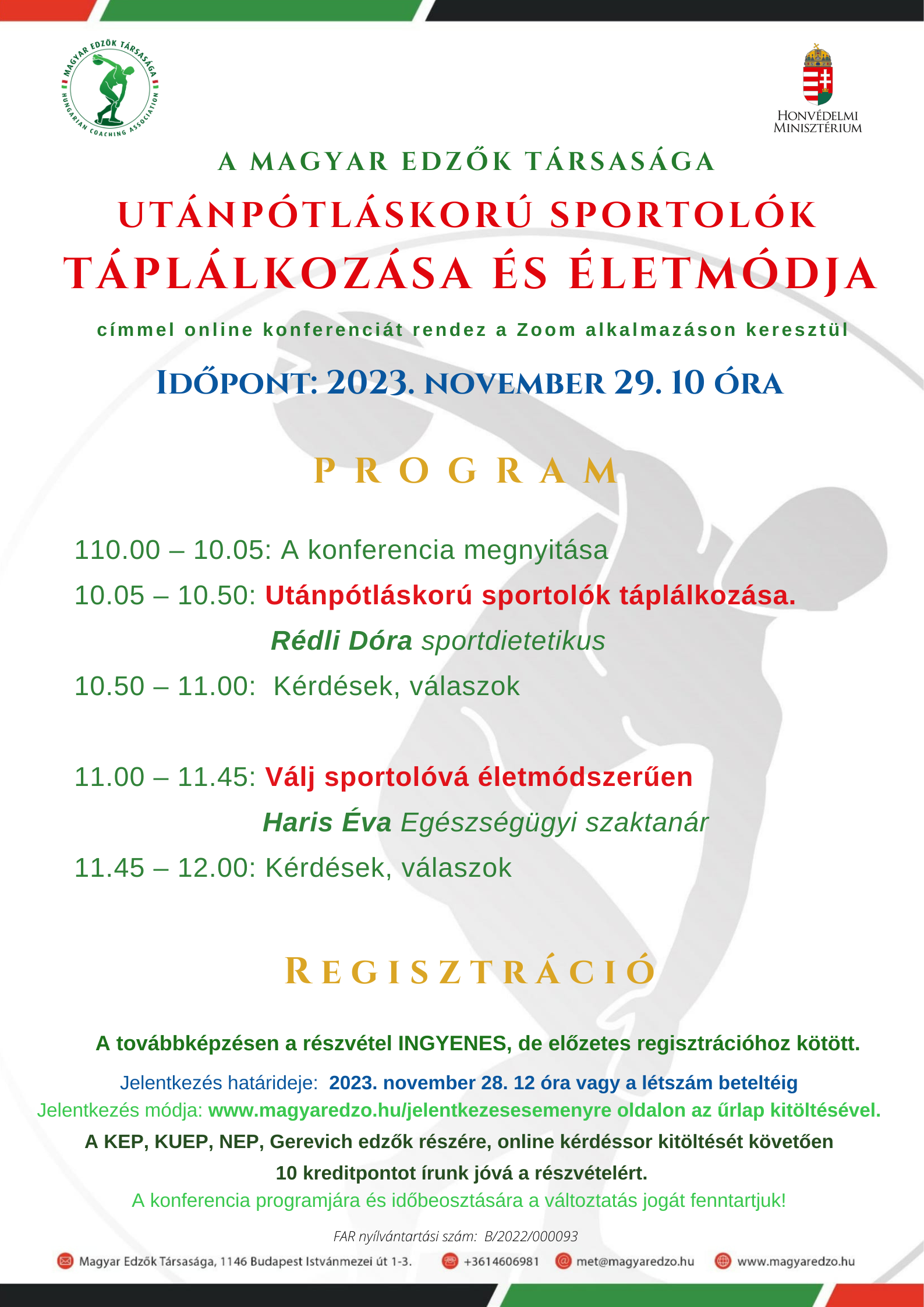 Utánpótláskorú sportolók táplálkozása online konferencia 2023. november 29.