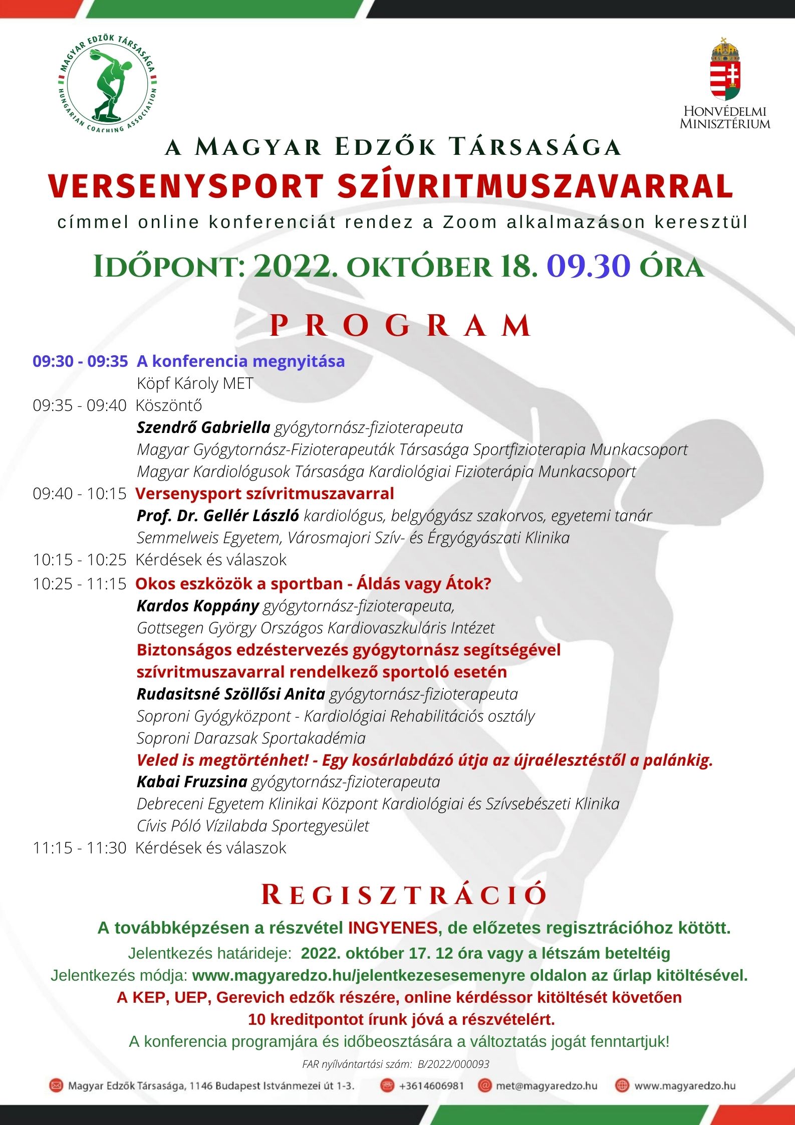 Versenysport szívritmuszavarral online konferencia 2022. október 18.