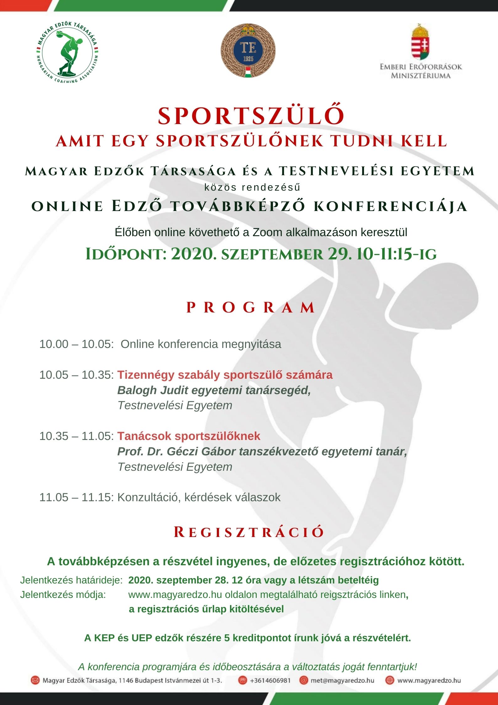 Sportszülő amit egy sportszülőnek tudni kell online konferencia 2020.szeptember 29.